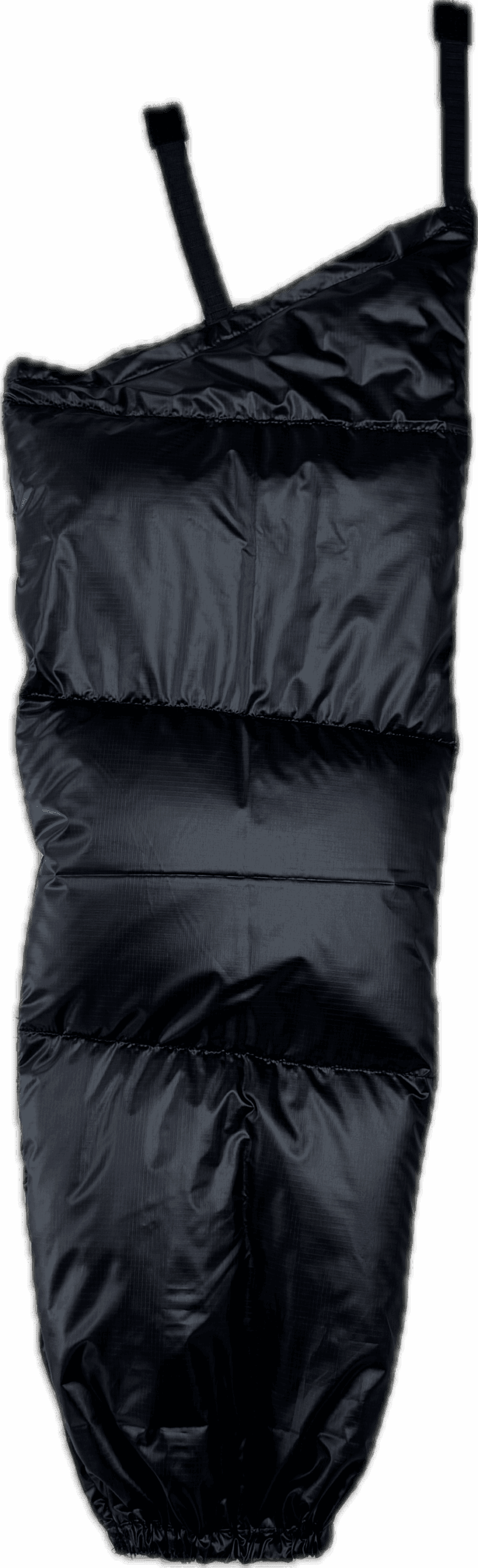 Now I use the down sleeves whenever I need them, and when the pack comes off, I put on a down vest (which has stayed dry and fluffy!), and it’s just like wearing a jacket. I tied knots in the straps to customize the fit for myself; I got the large size in order to wear them on my legs at night, upping the insulative power in my sleeping bag considerably. Also, I use a small strip of “loop” velcro and fold it over the “hook” velcro on the straps to protect gear from snags.